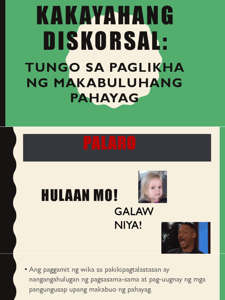 Kakayahang Diskorsal Halimbawa : Dorangkimmy Pptx Kakayahang Diskorsal Tungo Sa Paglikha Ng Makabuluhang Pahayag Ang Paggamit Ng Wika Sa Pakikipagtalastasan Ay Nangangahulugan Ng Course Hero : Ang salawikain ay proverb samantalang ang kasabihan ay saying. mga halimbawa ng kasabihan.